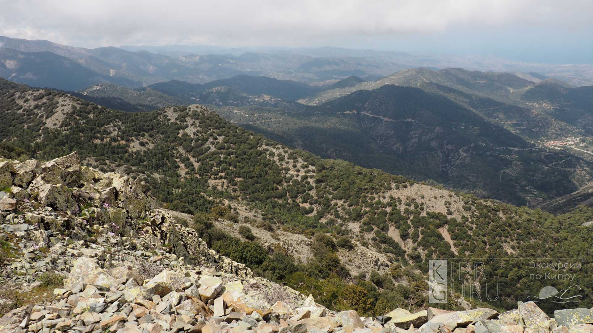 1. Верхний участок маршрута (примерно на полпути), а, вернее, отрезок метров 600 — это, на мой взгляд, лучший обзорная зона Троодоса. В хорошую погоду , когда небо чистое, видно на многие километры вокруг: от побережья Лимассола до северных гор, от начала Троодоса на востоке до вершины Олимпус.