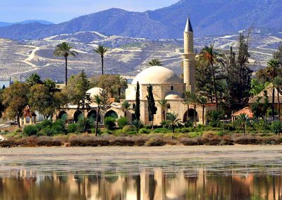 Это уникальное место — не просто сверкающие водные зеркала. Сюда слетаются тысячи фламинго из Африки, а летом белоснежная соль покрывает поверхность, словно лёд в пустыне. На берегу возвышается мечеть Хала Султан Текке — четвертая из главных святынь ислама, где, по преданию, похоронена тётя пророка Мухаммада.
